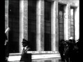 Mussolini e Schuschnigg ai piedi di una scalinata all'esterno della stazione di Firenze