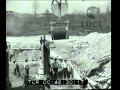 Operai al lavoro nei cantieri per la costruzione del Ponte Pieris sull'Isonzo